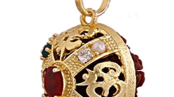 शुद्ध आकृति (पंचधातु) से बने गोल आकार में रुद्राक्ष पेंडेंट, और केंद्र में रुद्राक्ष और नवरत्न जो कि इस पेंडेंट में ठीक से चिपकाए गए हैं, बहुत ही आध्यात्मिक और धार्मिक लगते हैं।