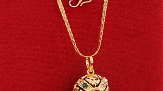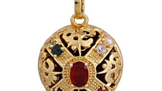• Rudraksha Pendant in round shape made up of Pure Brass (Panchdhatu), and with Rudraksha stabbed in the center and Navratana which are properly stabbed in this Pendent looks very Spiritual and Religious.