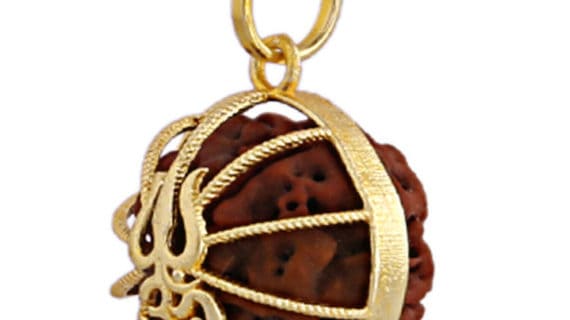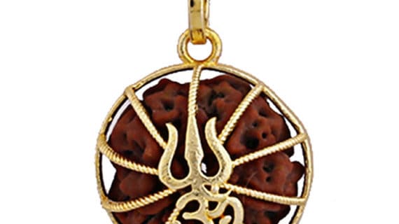 Gold plated Rudraksha Pendant framed in Om and Trishul design attached in a Pendent made up of Pure Brass gives it an elegant and beautiful look.