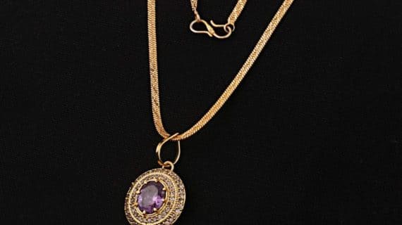 - Designer Purple Sapphire stone is made up of Pure Brass (Panchdhatu) and with blue sapphire and zircons which are stabbed in this pendent which looks very beautiful and elegant.