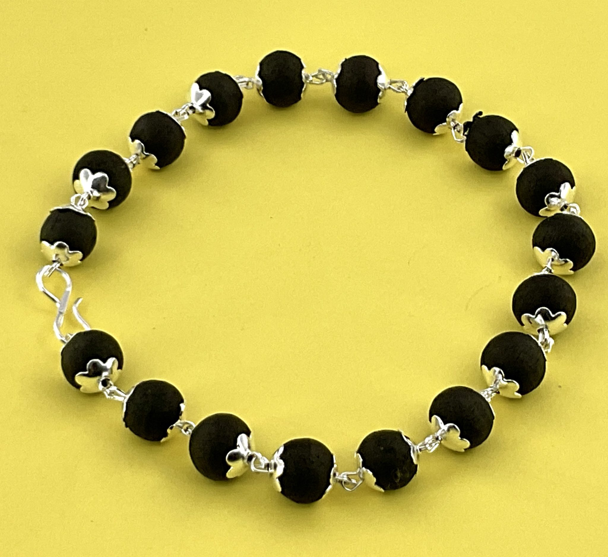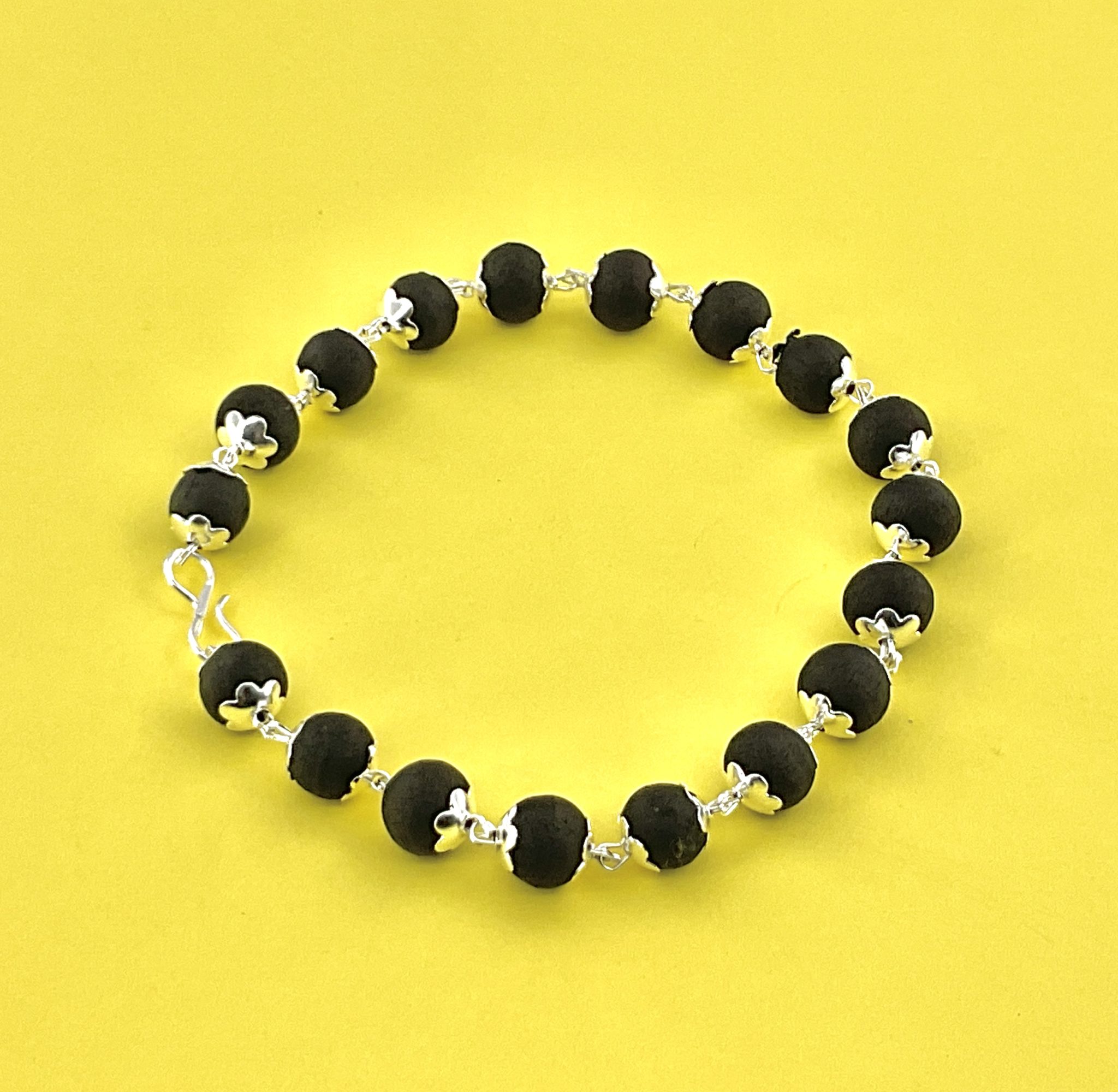 Karungali silver coating bracelet crafted from natural sacred Karungali wood, known for its grounding and protective energy. Stylish silver finish makes it perfect for daily wear, meditation, and spiritual use. Lightweight, durable, and suitable for both men and women.
