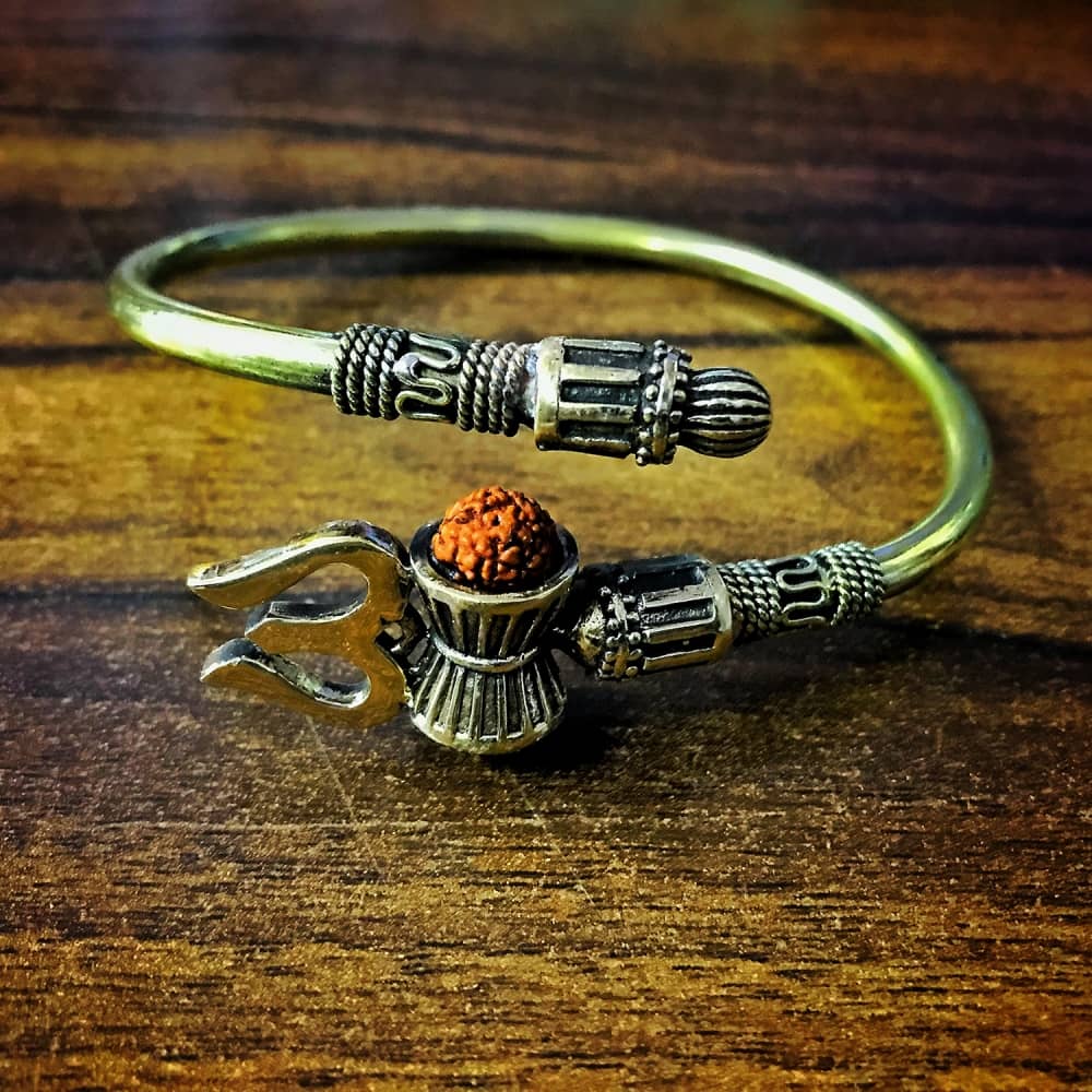 This designer Trishul Kada is made up of Pure Brass (Panchdhatu) and with Rudraksha and Damru which is stubbed in this Kada, plated in silver looks very spiritual and religious.