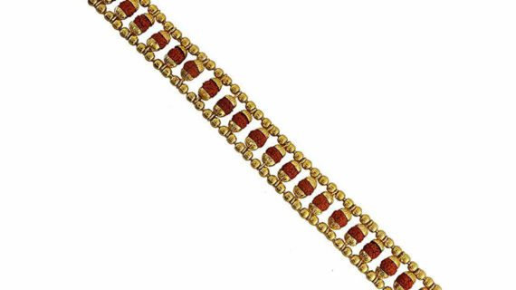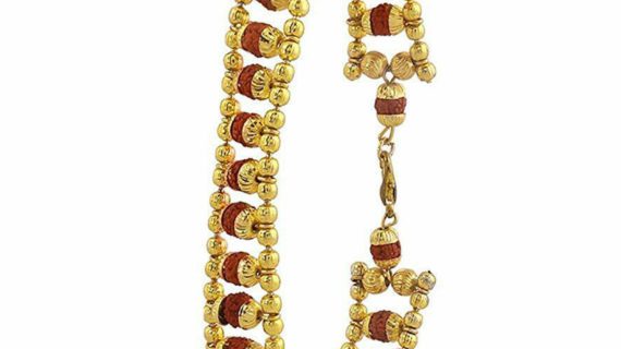 - Designer Premium Rudraksha Chain Bracelet Plated in Gold made up of pure Brass (Panchdhatu) gives it an elegant and beautiful look.
