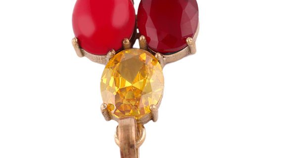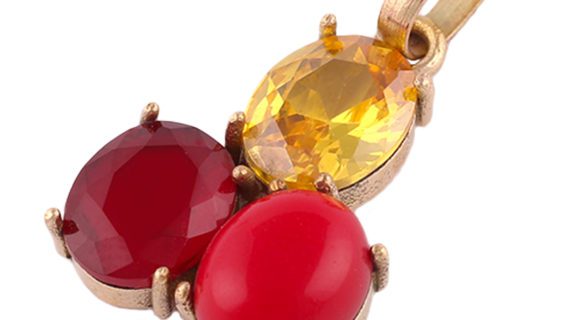 Yellow sapphire coral and ruby stone pendant gold plated